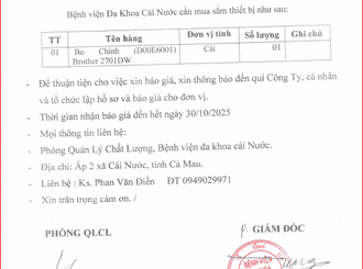 xin báo giá thiết bị phần cứng phục vụ bệnh án Điện tử của Bệnh viện đa khoa Cái Nước