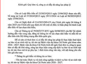 Yêu cầu báo giá dịch vụ bảo vệ an ninh trật tự, tài sản tại Bệnh viện ...