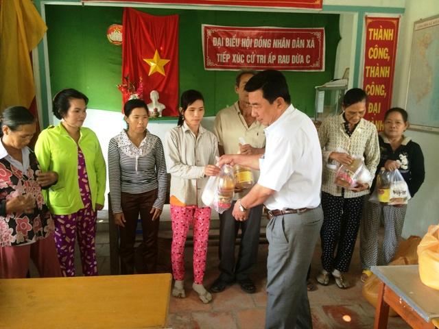 BS Nguyễn Thành Bước, Phó Giám đốc tặng quà cho hộ nghèo ấp Rau Dừa C xã Hòa Mỹ huyện Cái Nước.