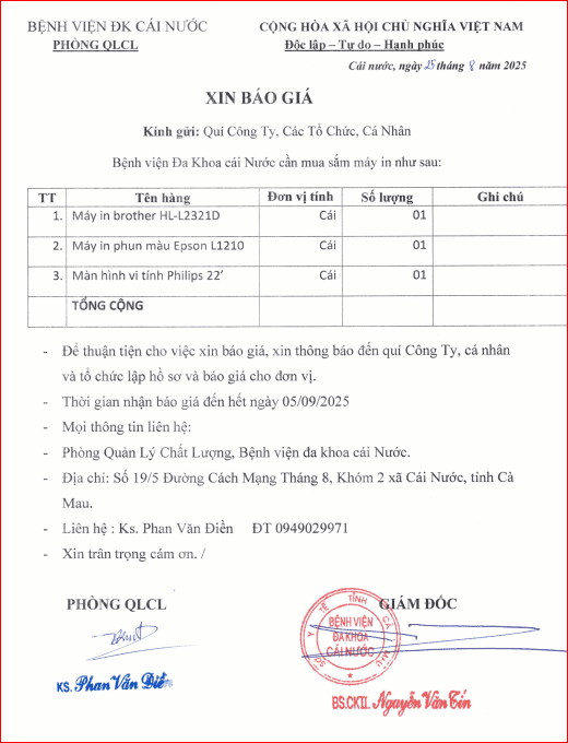 YÊU CẦU BÁO GIÁ MUA SẮM