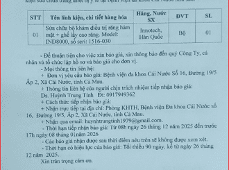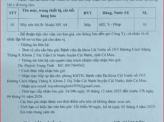 THÔNG BÁO Về việc đấu giá thuê dịch vụ vệ sinh công nghiệp, căn tin 2 kết hợp khu thể thao tại Bệnh viện Đa khoa Cái Nước